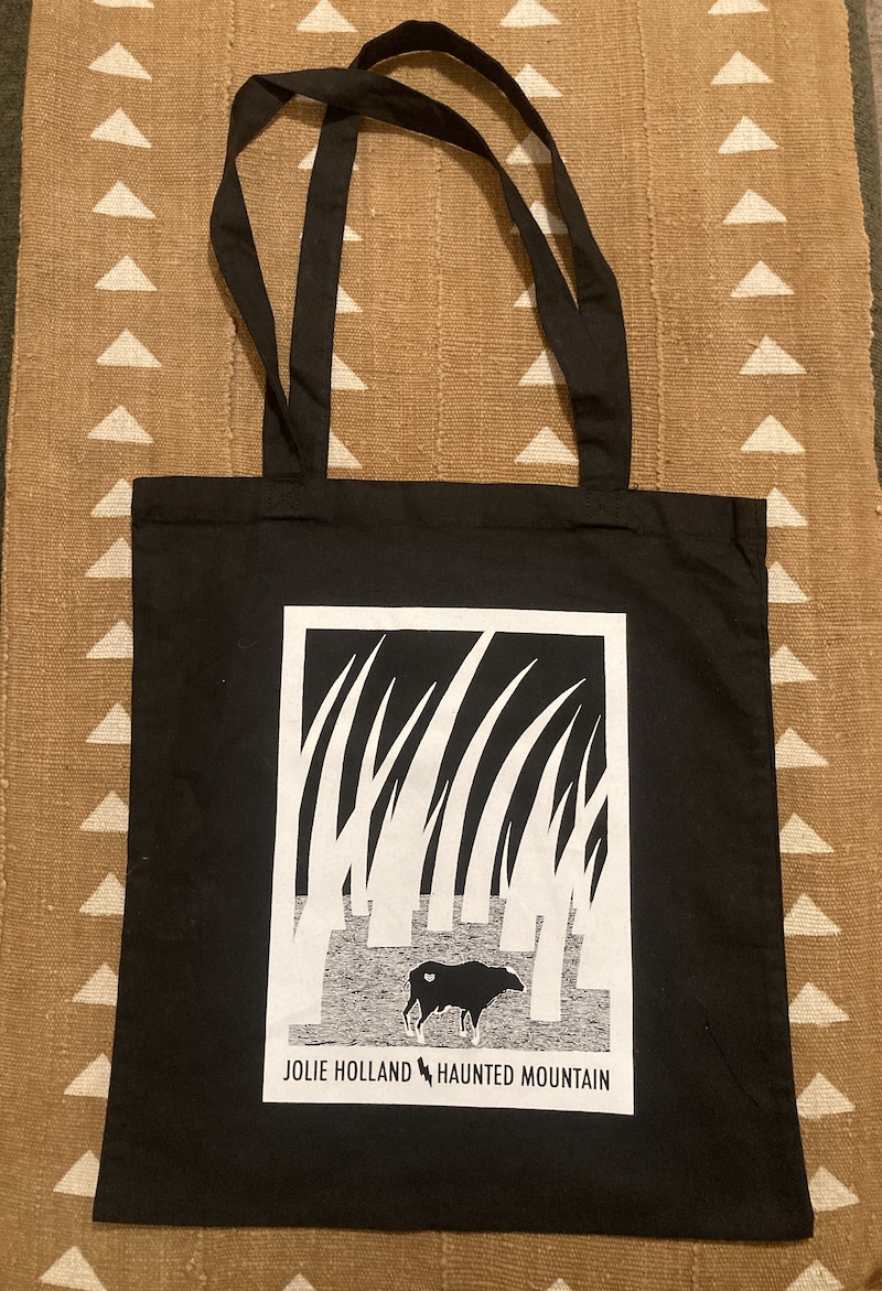 This is a nice little cotton tote with an image that is from a tarot drawn by Stefan Jecusco called the lunatic deck. I still have a few of the tarot left here on the site. I’d say this tote is good for like a simple handbag kind of tote. Not if you’re hauling around a bunch of stuff.
