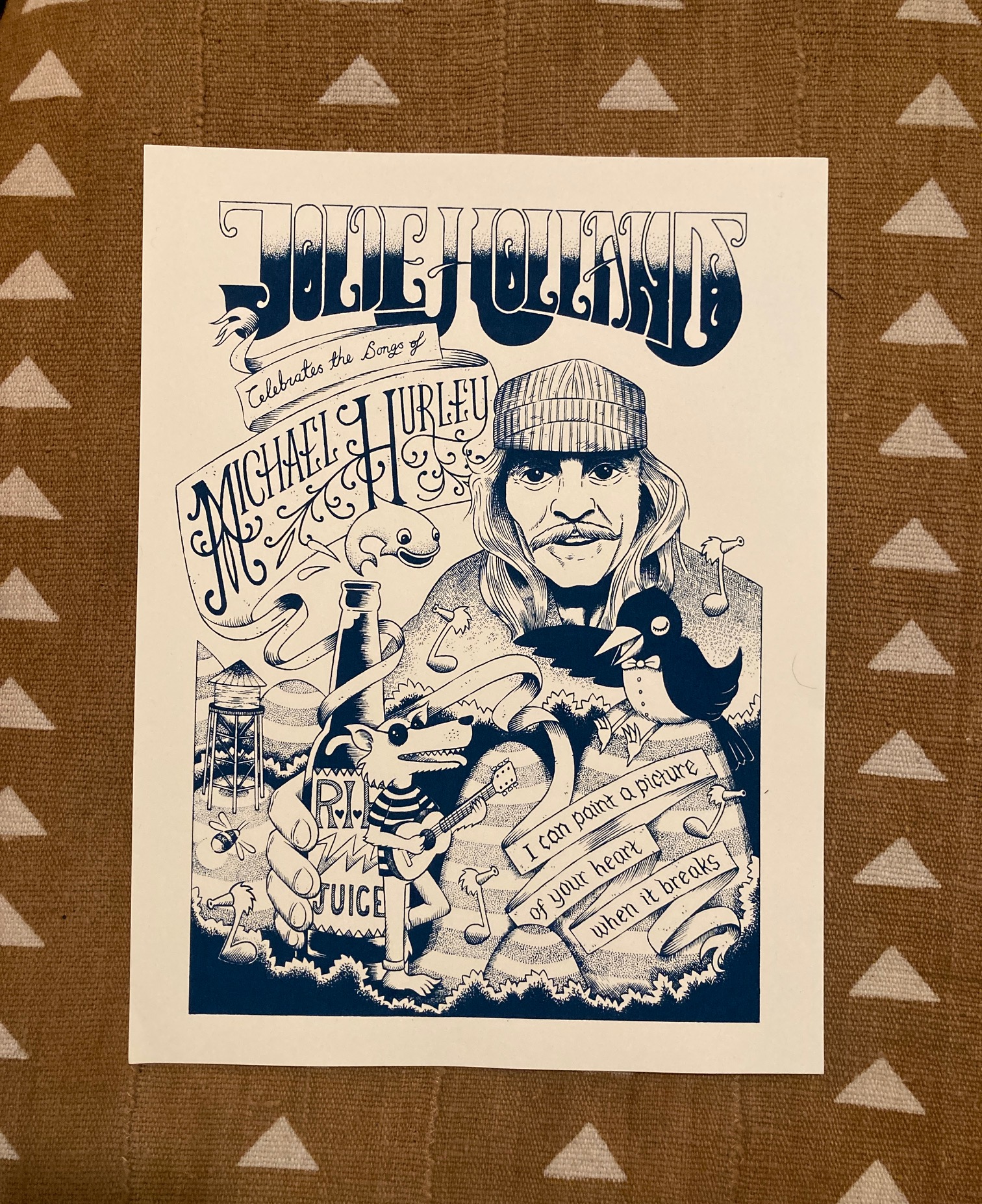 Jolie Holland Celebrates the Music of Michael Hurley Poster, autographed. Illustrated by Jack Fallows, printed by Robert Steel.